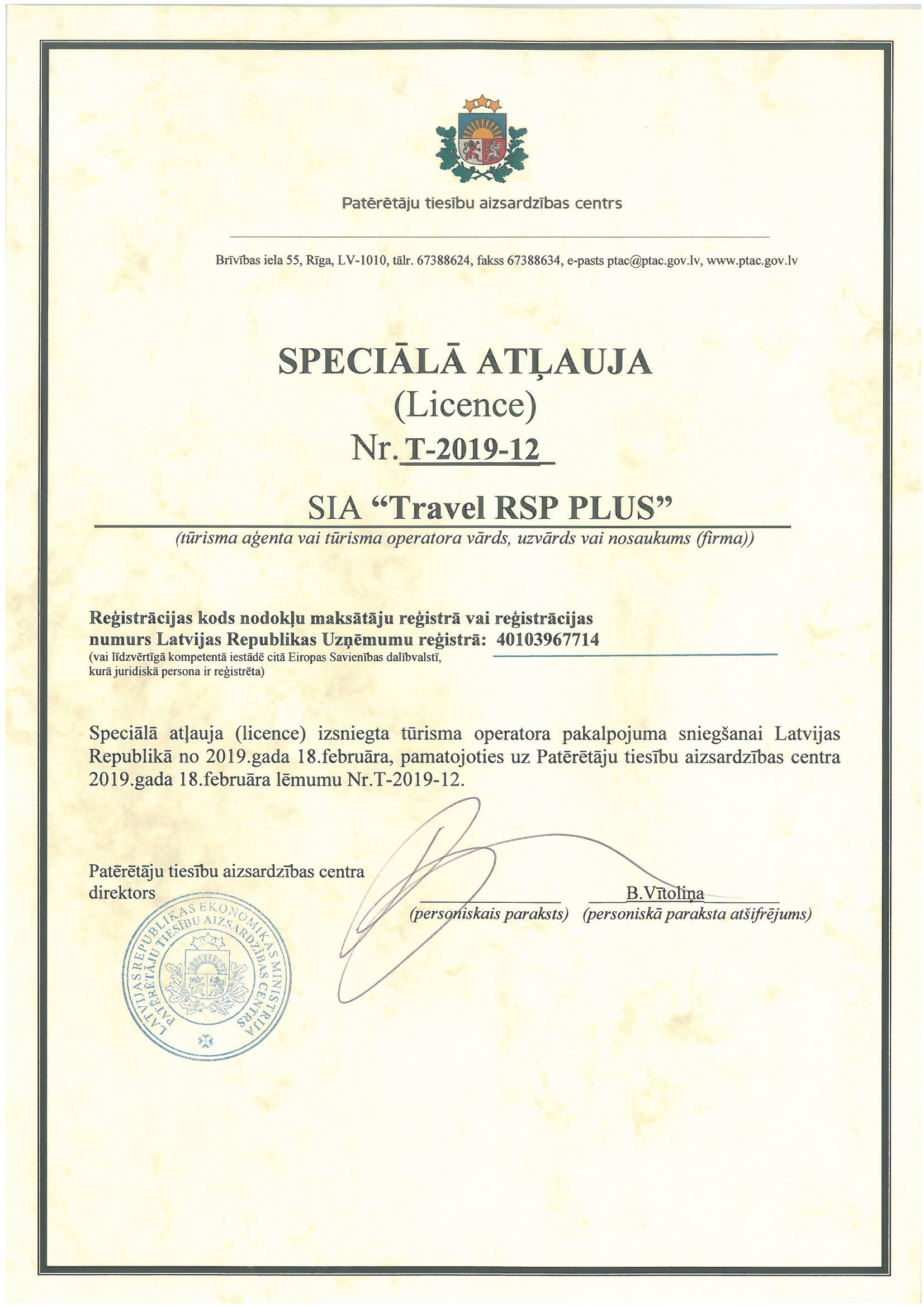 SIA “Travel Plus”, reģ.nr. 40103212495